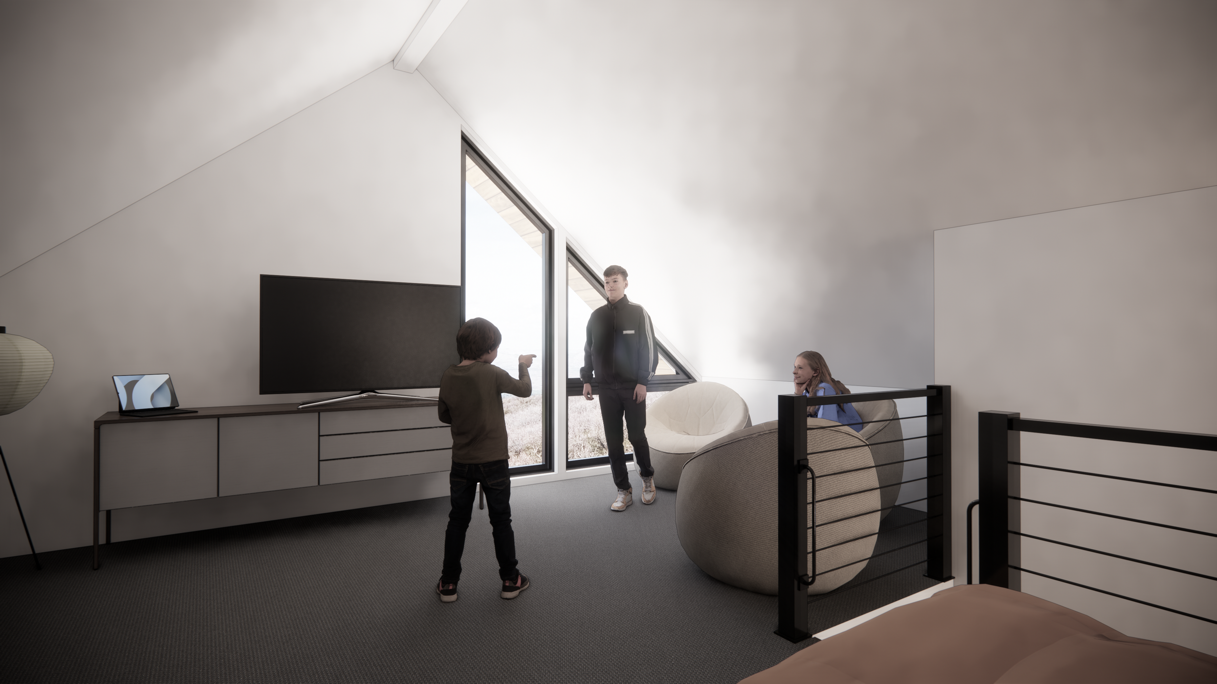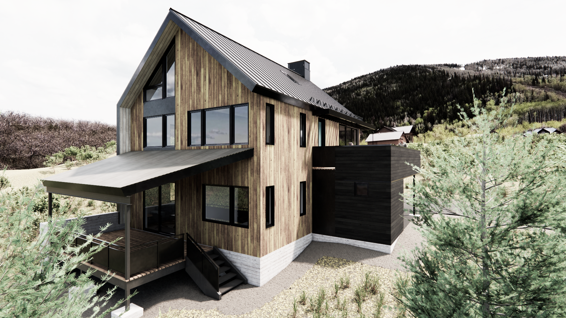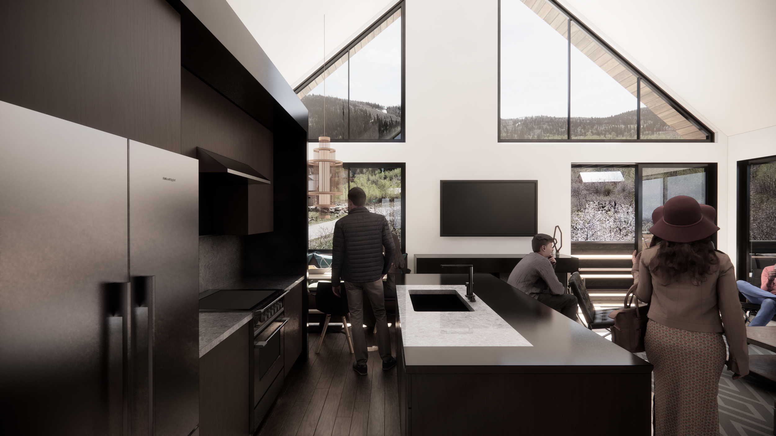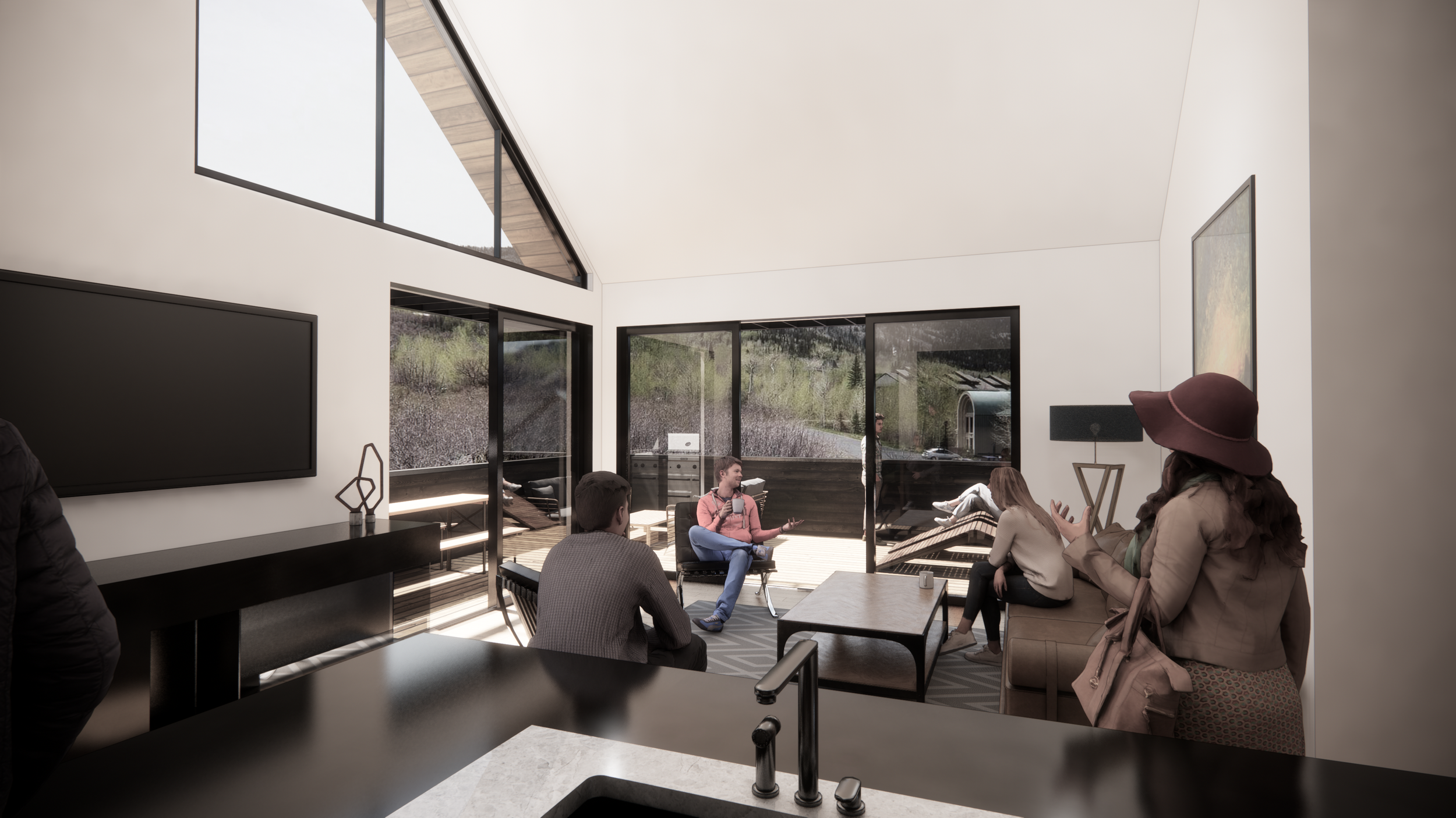 Designed to host up to two families—or as many as a dozen people on a long weekend—the project emphasized shared experience over excess space. Sleeping areas were intentionally minimized to allow the social core to expand: an open great room, generous circulation, and outdoor gathering areas that encouraged connection after days spent skiing or mountain biking. Although the project was ultimately shelved during the pandemic, it remains a meaningful part of my design evolution—a distilled study in scale, privacy, and the craft of creating community within a compact footprint.