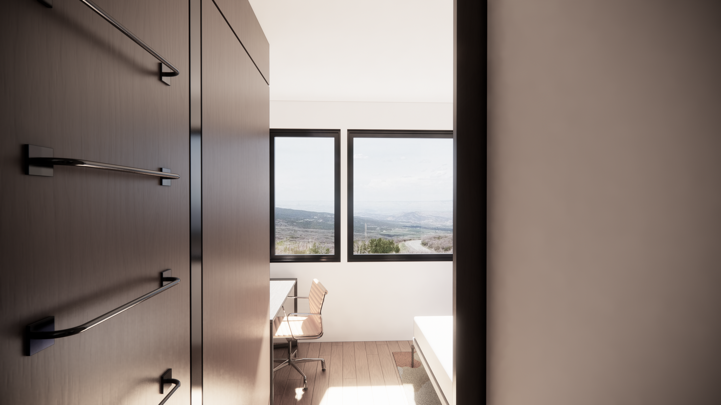 Conceived as a contemporary take on the classic mountain cabin, this design offered a year-round retreat for family gatherings at the base of the Powderhorn Ski Area. The small parcel is bordered by open space on two sides, with older condos flanking the property. To capture natural light while preserving privacy, the cabin was rotated on its site so large openings and exterior living spaces orient toward the open meadows and views, while narrower apertures face the neighboring developments. The result is a simple, compact form carefully tuned to its surroundings—bright, sheltered, and grounded in the quiet edge of the resort.